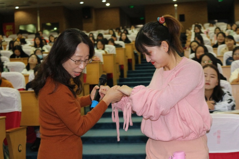 谈老师的讲解生动有趣,整场讲座气氛轻松活跃,过程中设计了许多互动环节,同学们都积极配合,参与其中,在游戏和欢笑中学到了许多。从谈老师提供的案例中,同学们感受到了活动设计细节的重要性,每一个环节都应该经过精心的思考,有其存在的意义,应时刻牢记以幼儿为中心,以巧妙的活动设计引起和维持幼儿的兴趣,将幼儿的无意注意和有意注意相结合,将游戏与音乐活动相结合,让幼儿在游戏中学,在活动中得到全面发展。谈老师最后强调任何有趣的游戏都可以与教育活动相结合从而达到相得益彰的效果,具体怎样实践运用值得同学们在未来的工作中去研究去探索去创新。