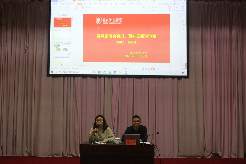2020年11月18日晚在主楼国际会议中心,开展了“乘风破浪会有时,直挂云帆济沧海”主题讲座活动。讲座邀请了现任盐城市学富实验公司党总支书记、董事长倪大城,bw西汉姆联各年级定向师范生均参加了此次讲座。