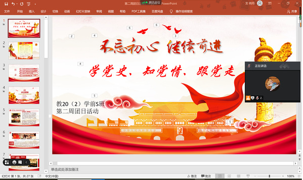 活动开始,各团支部先组织学习了习近平总书记在党史学习教育动员大会上的重要讲话精神以及相关新闻评论。习近平总书记的讲话高屋建瓴,视野宏大,思想深邃,深刻阐述了开展党史学习教育的重大意义,深刻阐明了党史学习教育的重点和工作要求,对党史学习教育进行了全面动员和部署,为我们开展好党史学习教育指明了方向,提供了根本遵循。而同学们也应该切实把思想和行动统一到习近平总书记重要讲话精神上来,做到学史明理、学史增信、学史崇德、学史力行,学党史、悟思想、办实事、开新局。最后,团员青年们就党史学习展开了讨论,各团支部团支书都分享了自己的党史学习感悟,也让同学们充分认识到“跟党走”的重大意义,更明白了应该做到学思用贯通、知信行统一,将“学党史、知党情、跟党走”活动主题入脑入心、走深走实。