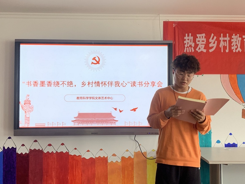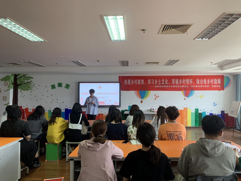 本次活动面向的是一至三年级乡村师范班的同学。读书分享会的内容围绕“书香墨香绕不绝,乡村情怀伴我心”这一主题进行。在活动过程中,由十个乡师班中推选出来的两位同学,从王庆丰的《农村教师培训读本》、朱启臻和王广斌的《农村教育知识读本》、魏书生的《班主任工作漫谈》、克拉克的《优秀是教出来的:创造教育奇迹的55个细节》、梁漱溟的《乡村建设理论》、常芳的《激励与中国农村教育》、高万祥《优秀教师的九堂必修课》、于永正的《于永正:我怎样教语文》、贺小晴的《天边的公司》、张秀君的《成全乡村孩子对美好教育的向往》十本书中选择,进行两分钟左右的现场读书心得的分享交流。乡村教师是乡村振兴的重要力量。一支粉笔、两袖清风、三尺讲台、四季耕耘,他们用自己的无私奉献,点亮乡村的文明之光,滋润乡村教育的沃土。作为未来的乡村教师,我们对培养优质乡村教师、提升乡村教育质量有着特殊的感情和特别的期待。活动结束后,我们会根据分享会上同学们的表现,进行了评分并评选出优秀的分享者。