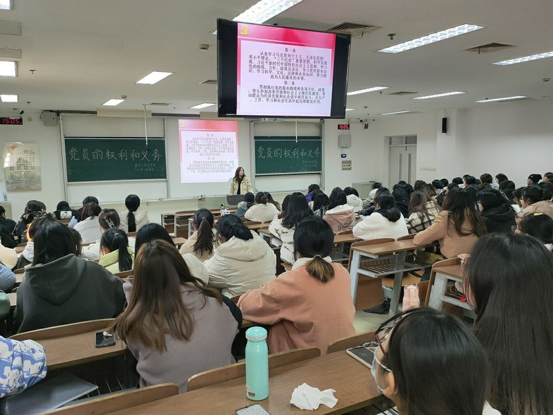 本次党课培训的主题是党员的权利和义务。培训伊始,陈荣老师具体介绍了党章中党员的八项权利与八项义务。随后,陈荣老师借助马克思主义哲学观点来向同学们介绍党员权利与义务的关系,并教授如何正确履行党员义务。接着,陈荣老师用感动中国获奖人物王顺友的事迹激励员工成为先锋模范。最后,陈荣老师结合工作经历,教诲员工要想成为一名合格的党员,就要从优秀的员工干部做起。