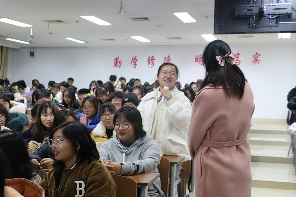 在大家的热烈掌声中,交流会开始了。在一开始,李文艳老师以假如让我重返校园这个话题,和同学们分享了她的老员工活,并且和同学们交流对于老员工活的看法。接着,李文艳老师为同学们送上了建议与规划:在大学里就要有自己的目标。在我们的生活中,一步一个脚印,我们终会有属于我们的成功,一步一脚印,走出踏踏实实的人生。