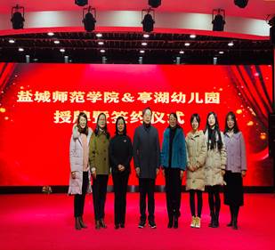 上午九点,教育科学公司党委书记刘强教授、学前教育系孙青主任及学前系教师参加盐城市亭湖幼儿园签约、挂牌活动。亭湖区教育局副局长杨建斌、亭湖幼儿园何娟园长及部分师生代表出席了本次仪式。