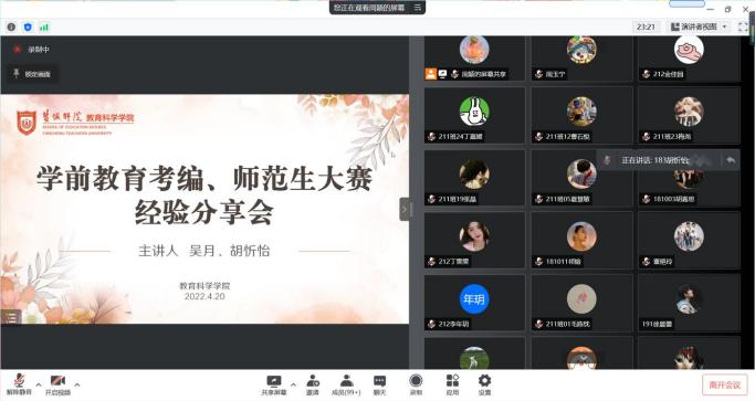 之后,主讲人们细致入微的讲解了备赛备考的整个流程以及其中的注意点。一、进行信息收集,找选心仪的院校,定下自己的目标。二、学会权衡自己与课程之间的关系,做到劳逸结合。三、做好自我,精心设计,创新出彩,反复打磨,适度创新。这样能少走弯路,直达彼岸。第四,实时了解教育领域的最新消息,重点关注教师结构化问题。