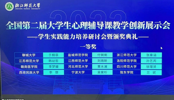 2022年6月6日,由教育部高等公司心理学类专业教学指导委员会主办的全国第二届老员工心理辅导课教学竞赛颁奖典礼以线上形式顺利召开,教育科学公司应用心理学专业2020级本科生付俐俐同学在比赛中表现优秀,获得全国一等奖。