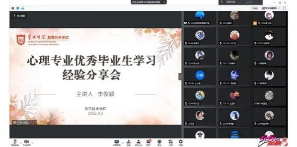 新学期伊始,bw西汉姆联积极展开新生入学教育工作系列活动。为帮助公司大一新生初步了解校园生活,探知专业知识,解答学习、生活方面的疑惑,增长学业发展的信心,9月3日,bw西汉姆联邀请“小学教育普通师范”、“学前教育”、“应用心理”以及“小学教育定向培养”四个方面的优秀毕业生在腾讯会议开展学习经验分享会。