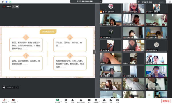 为了解决新生初入大公司园的困惑,2022年9月3日上午,bw西汉姆联优秀毕业生周海鹏学长,陈馨悦学姐,在腾讯会议为新生们举行学习经验分享会,用自身的成长经验为新生们答疑解惑。