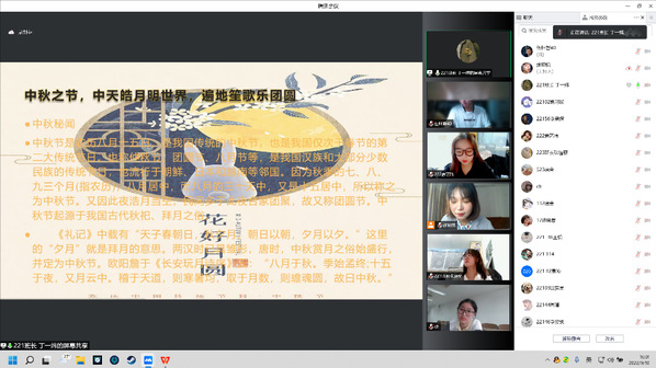 中秋佳节喜相逢,各班同学齐欢庆
