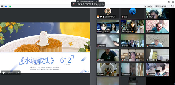 224班开展 “猜灯谜”活动,通过抢答模式,以宿舍为单位计分,调动同学们参加活动的积极性。225班进行了“诗词飞花令”,随机选出两个宿舍,进行PK,说出有“月”字的诗词,现场比赛激烈,两队僵持不下,极大地展现了同学深厚的诗词功底,同时也激发了大家对于诗词的兴趣。