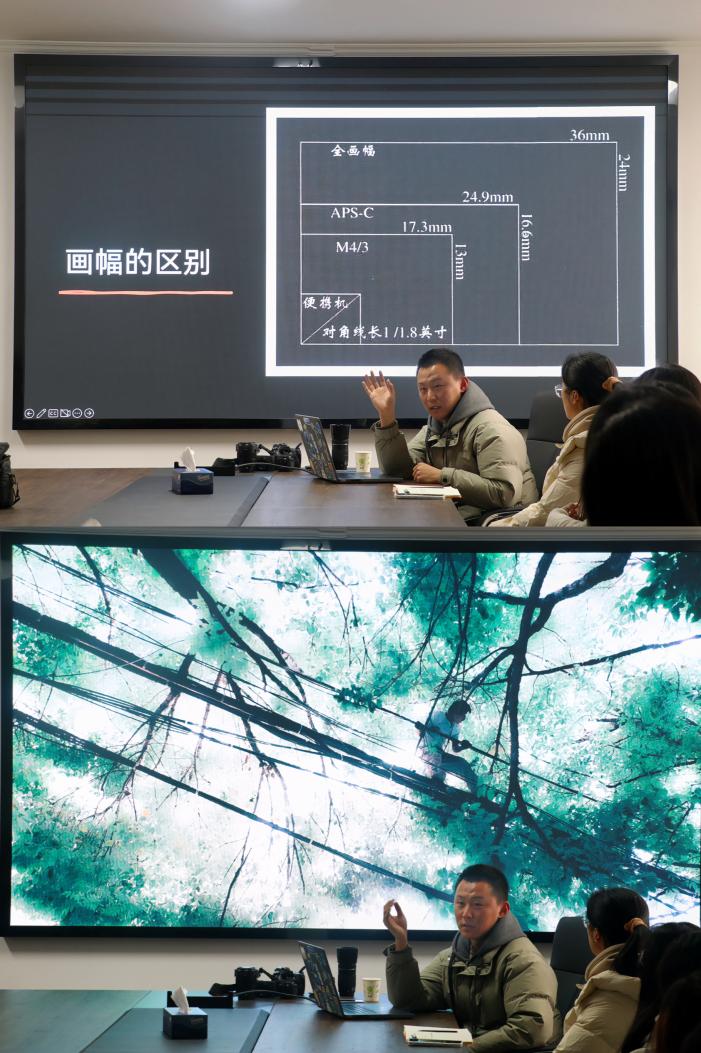 随后,薛冬通过展示不同风格的摄影作品,教授员工干部有关摄影的知识与技巧,如恰当的构图、色彩白平衡、画幅区别、格式选择、曝光三元素与挡位调整等。薛冬指出,摄影既可以还原大众认知的真实,也可以再造个体内心之想象。通过欣赏不同风格的摄影作品,员工干部们更加直观地感受到摄影的魅力。
