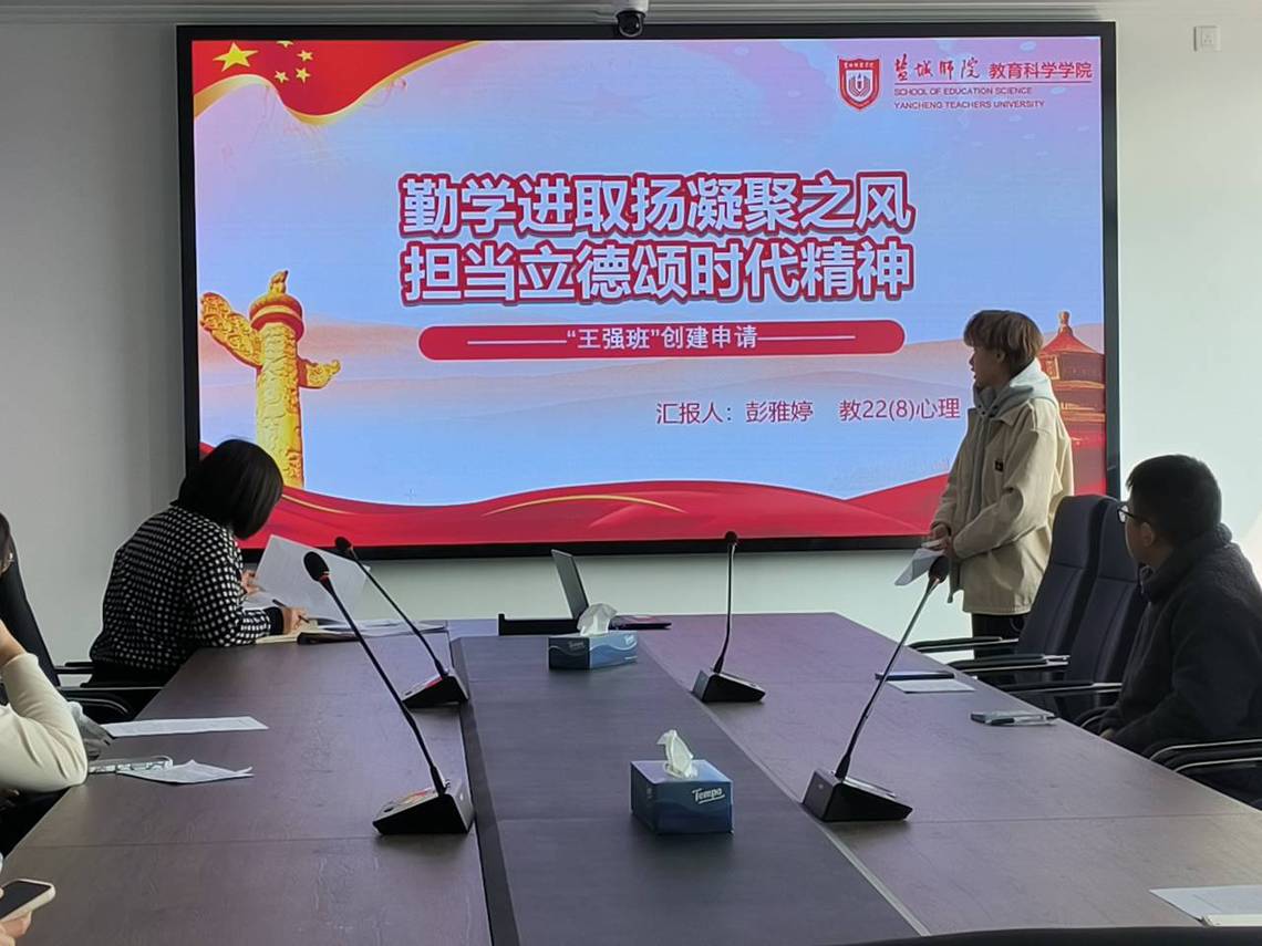 本次“王强班”创建申报共计7个班级,其中21级5个班,22级2个班,依次进行汇报工作,最后评选出两个最优秀的班集体。首先,教21(4)小教S班长从班级构成、建设情况、创建方案等多方面进行详细的申报汇报,并表明班级将会一直积极响应公司号召,开展团日、青年大学习等活动,为建设“王强班”发挥积极影响。接着,教21(5)小教汇报人从班级简介、班级活动展示、班级成果展示、未来工作计划四个方面进行汇报,表示同学们能根基实际、勤于实践,将王强精神深入专业、学习与生活中,成为王强精神的守护者、践行者、传播者,同时号召同学们“用热忱锤炼初心,用粉笔书写忠诚”。紧接着,各个班级有条不紊地进行本次汇报,每一位汇报者都以最好的姿态展示本班级的各项申报条件,绘制着未来的发展方向。