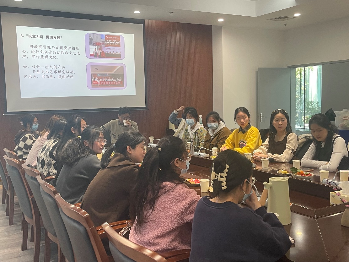 会议伊始,老师向志愿者们介绍了志愿者的定义和博物馆志愿者的职责与义务,通过一系列详细的介绍,志愿者们进一步了解到了作为海盐博物馆志愿者的特殊性与重要性,更加坚定了长期参与博物馆志愿活动的决心。随后,老师又分享了开展海盐博物馆志愿活动的经验,公司志愿者们积极踊跃发言,现场气氛活跃。交流会中,各种富有创新的建议层出不穷,展现了青年志愿者的创新意识与蓬勃朝气。