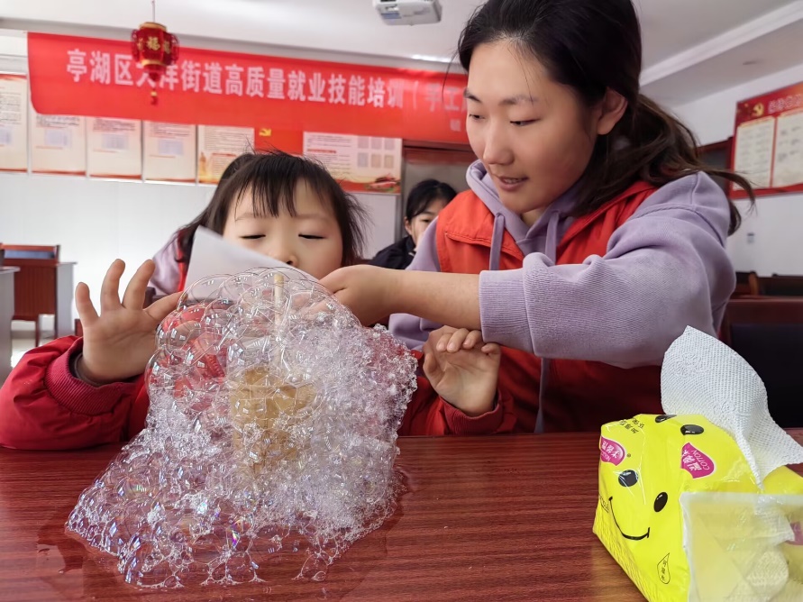 活动过程中,志愿者们以“一对一”的方式和小朋友结成学习伙伴,开展义务辅导。他们通过生动有趣的语言,认真、耐心地为孩子们讲解作业中出现的难点和要点,为孩子们排忧解难。之后,志愿者还带着小朋友开展了科学小课堂——水的表面张力实验,讲解有趣的科学知识,在孩子们心中点燃科教兴国的梦想。