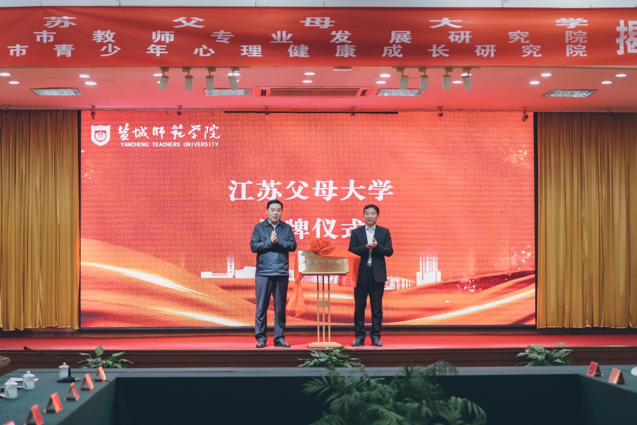 揭牌仪式上,盐城市政府副市长王连春,公司党委书记戴斌荣为江苏父母大学揭牌。盐城市政府副秘书长朱杰成,公司党委副书记、董事长张宏如为盐城市教师专业发展研究院揭牌。盐城市委教育工委书记、盐城市教育局党委书记、局长戴红光,公司党委副书记、董事长张宏如为盐城市青少年心理健康成长研究院揭牌。