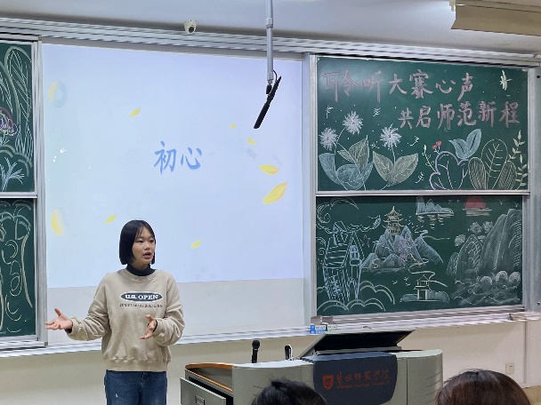 活动结束后,小学教育专业207班的王诗婧同学深受启发,她说到:“学长学姐们的经验分享对我准备师范生大赛有很大的启发。他们句句掷地有声、久久回响,落在我的心坎上,牵动着我对于未来的构想与展望,未来我一定更加努力夯实自己的基本功,向优秀的学长学姐们看齐!