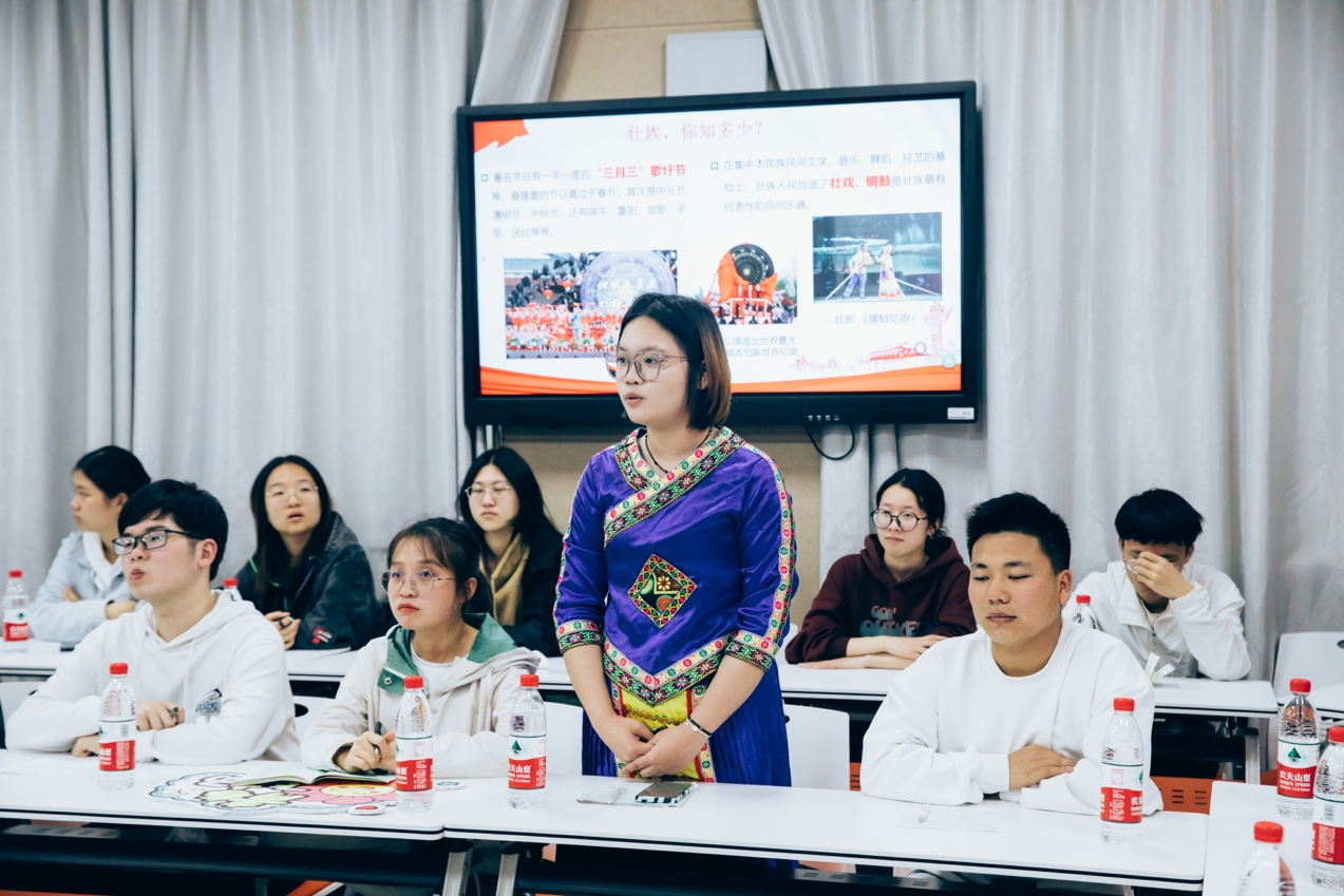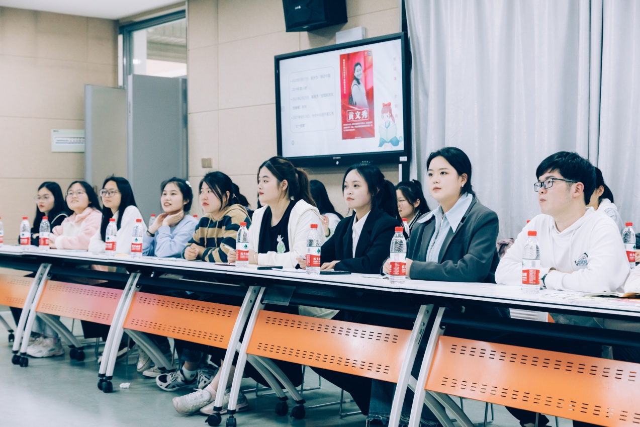 在互动交流中,来自218 班广西壮族自治区的蒋伊帆同学用自己制作的课件表达了自己的初心和决心:“2021年因为求学来到这个陌生的城市,两年的时间我感受到公司给与我们的关心和温暖,今天戴书记和我们亲切交谈后,让我更加坚定要像黄文秀那样,扎根基层,建功立业,用自己所学为家乡事业贡献自己的一份绵薄之力。”