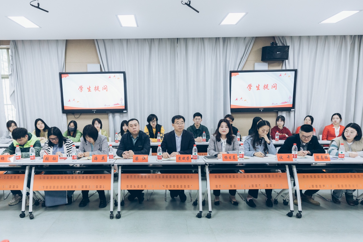 戴斌荣仔细听取了同学们的发言及提出的意见建议,对大家心系公司发展、参与公司管理、积极提出意见建议给予了肯定和表扬,并就同学们关注的问题一一作了回应,现场气氛轻松活跃。就同学们关心的就业“面广不专”问题,他以“你自己适合什么?”、“你想要做什么? ”、“社会需要你做什么?”三大方面展开讲述,按照目标、计划、行动三步走,建议同学们要以国家社会需求为导向,把个人的理想追求融入党和国家事业之中;就同学们是否选择考研的问题,他鼓励同学们做好未来发展规划,努力读研深造,不断激发自己内在向上的动力和潜力;就同学们提出的校园环境、基础设施建设等方面的问题,他说,公司正在积极规划改善员工在校的学习和住宿条件,希望为同学们营造良好舒适的学习生活环境。