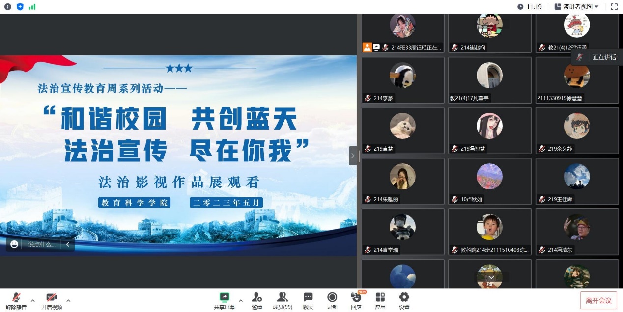 观看一部法治影视作品。法治宣传教育周期间,公司组织各班级线上观看法治电影《大人物》,寓教于乐,提高员工法治意识和法治素养。观影后,同学们积极分享自我感悟,强化法治宣传教育成效。