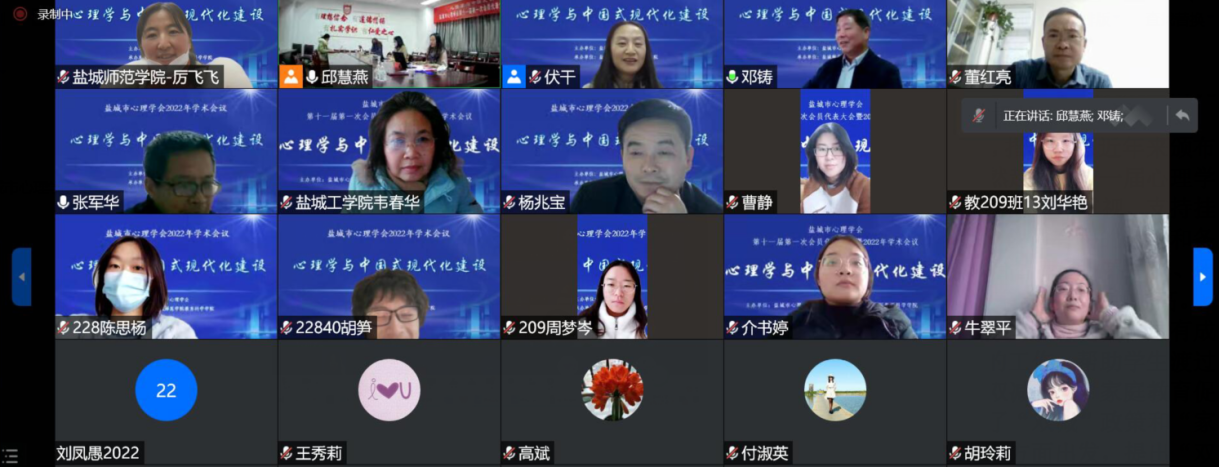 2022年12月17日,盐城市心理学会顺利召开第十一届第一次会员代表大会暨2022年学术会议。会议内容包括学会换届工作和2022年学术会议。