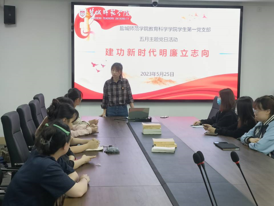 各支部结合主题教育相关要求确定“建功新时代,明廉立志向”等主题党日活动,科学落实学习教育、组织生活、民主议事、志愿服务、关心关爱等“五项基本任务”。各党支部组织党员原原本本、逐字逐句学习党的二十大报告和党章,认真研读主题教育学习资料,观看主题教育专题片《嘱托·奋进》。传达《关于开展“510”警示教育系列活动的通知》(盐师院纪〔2023〕7号)精神。组织党员集中研读《习近平总书记关于教育的重要论述》。组织师生党员积极开展主题教育调研及志愿服务活动。组织党员收看微党课《二十大党章公开课》及微纪录片《我和我的村庄》(第二集 我在甘港等你)。