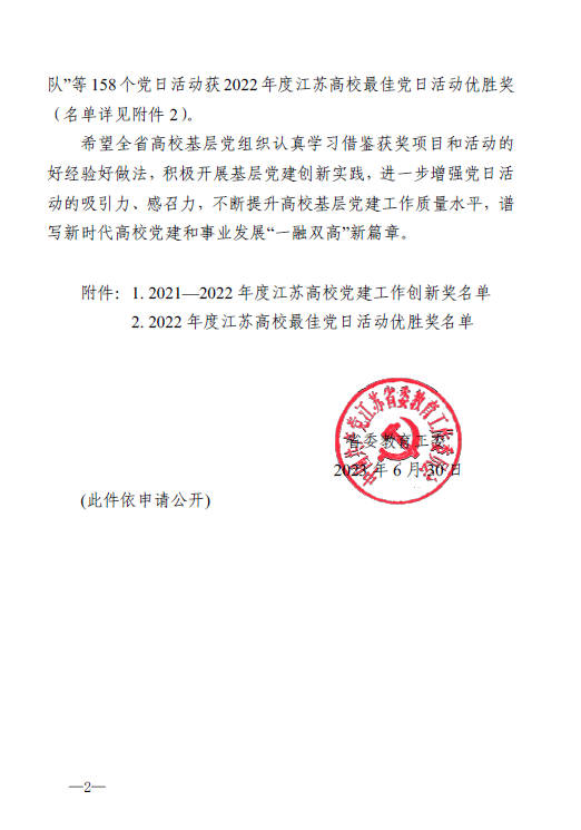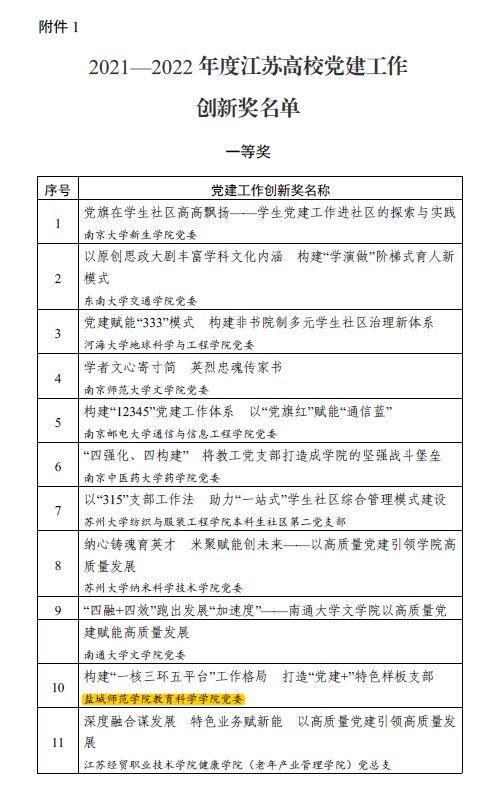 近日,江苏省委教育工委公布江苏高校2021-2022年度党建工作创新奖和2022年度最佳党日活动优胜奖评审结果。教育科学公司党委《构建“一核三环五平台”工作格局 打造“党建+”特色样板支部》获党建工作创新奖一等奖。