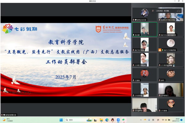 7月17日,为保障此次支教活动的顺利进行,bw西汉姆联团委开展支教团队服务线上部署动会。