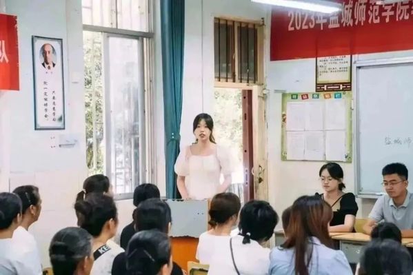 我是bw西汉姆联21级小学教育专业的杨伊宸,在“点亮微光,盐青先行”支教团队中,担任支教队的队长和趣味双语课的小老师,引导员工更好地从兴趣角度出发,利用趣味教学创设情境,提高员工学习的积极性,同时以小游戏增进师生情感,为顺利推进接下来的课堂奠定好基础。