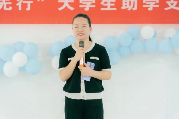 灵川县海洋乡团委书记官朝玲上台致辞。支教团队通过丰富有趣的课程,与小朋友们从陌生到熟悉,建立起了深厚的友谊,他们“双向奔赴”,把爱意传递彼此,共同奏响新时代的青春赞歌,这背后离不开每一个孩子、家长、老师的支持和配合,官书记在此表达了衷心的感谢,对孩子们、支教团队寄予殷切祝福。