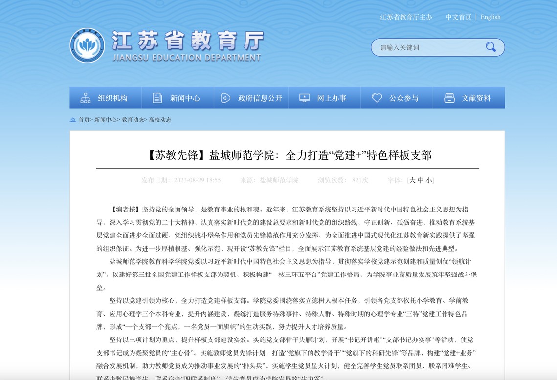坚持党的全面领导,是教育事业的根和魂。近年来,江苏教育系统坚持以习近平新时代中国特色社会主义思想为指导,深入学习贯彻党的二十大精神,认真落实新时代党的建设总要求和新时代党的组织路线,守正创新、砥砺奋进,推动教育系统基层党建全面进步全面过硬,党组织战斗堡垒作用和党员先锋模范作用充分发挥,为全面推进中国式现代化江苏教育新实践提供了坚强的组织保证。为进一步厚植根基、强化示范,现开设“苏教先锋”栏目,全面展示江苏教育系统基层党建的经验做法和先进典型。