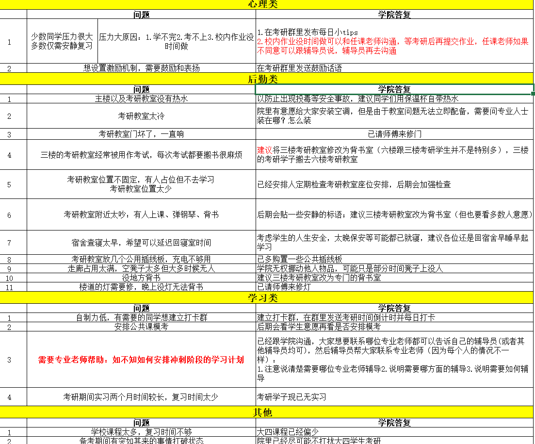 定点服务,温情护航。为做细考研学子服务工作,公司积极组织各年级开展考研经验交流会,帮助同学们更好的应对考研疑惑,改进自身学习方法,提高学习效率。此外,公司还通过定期发放问卷、建立考研打卡自律群、准备考研小“惊喜”、定点解决问题等举措关心员工,提升考研学子信心。