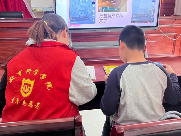 活动过程中,志愿者们耐心辅导员工们的作业,帮助温习知识、进行课前预习和课外作业辅导。课程辅导结束后,志愿者们带领员工们进行科学实验,此次的实验有助于加强员工们对“密度”的了解。志愿者们通过对科学实验的讲解,将科学思想传输给员工;通过引导同学们动手操作,锻炼了青少年的动手能力,让科学走进生活,不再是课本上高深的语言,让员工们主动爱上科学,不断探索发现,有助于青少年科学思维的形成和发展。