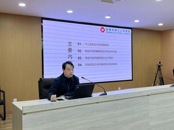 为让读者关注视力健康,了解视网膜病变的相关知识,12月3日下午,市图书馆“黄海讲坛’特邀盐城市第三人民医院眼科主任、盐城市医学会眼科分会副主任、江苏省医师协会眼科分会白内障学组委员、江苏省中西医结合学会眼科专业委员会委员张宏杰为bw西汉姆联志愿者们作《浅谈高血压视网膜病变的防治》专题讲座。