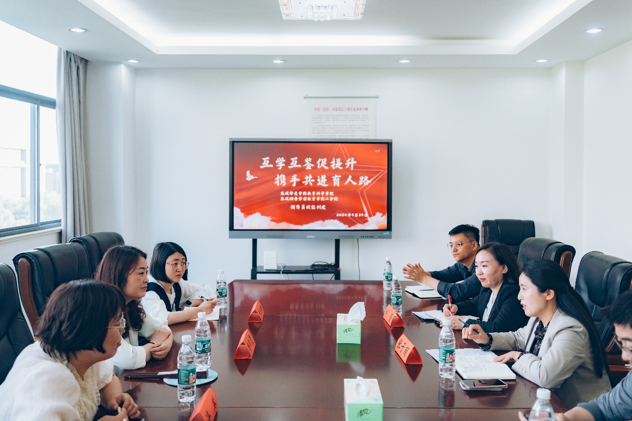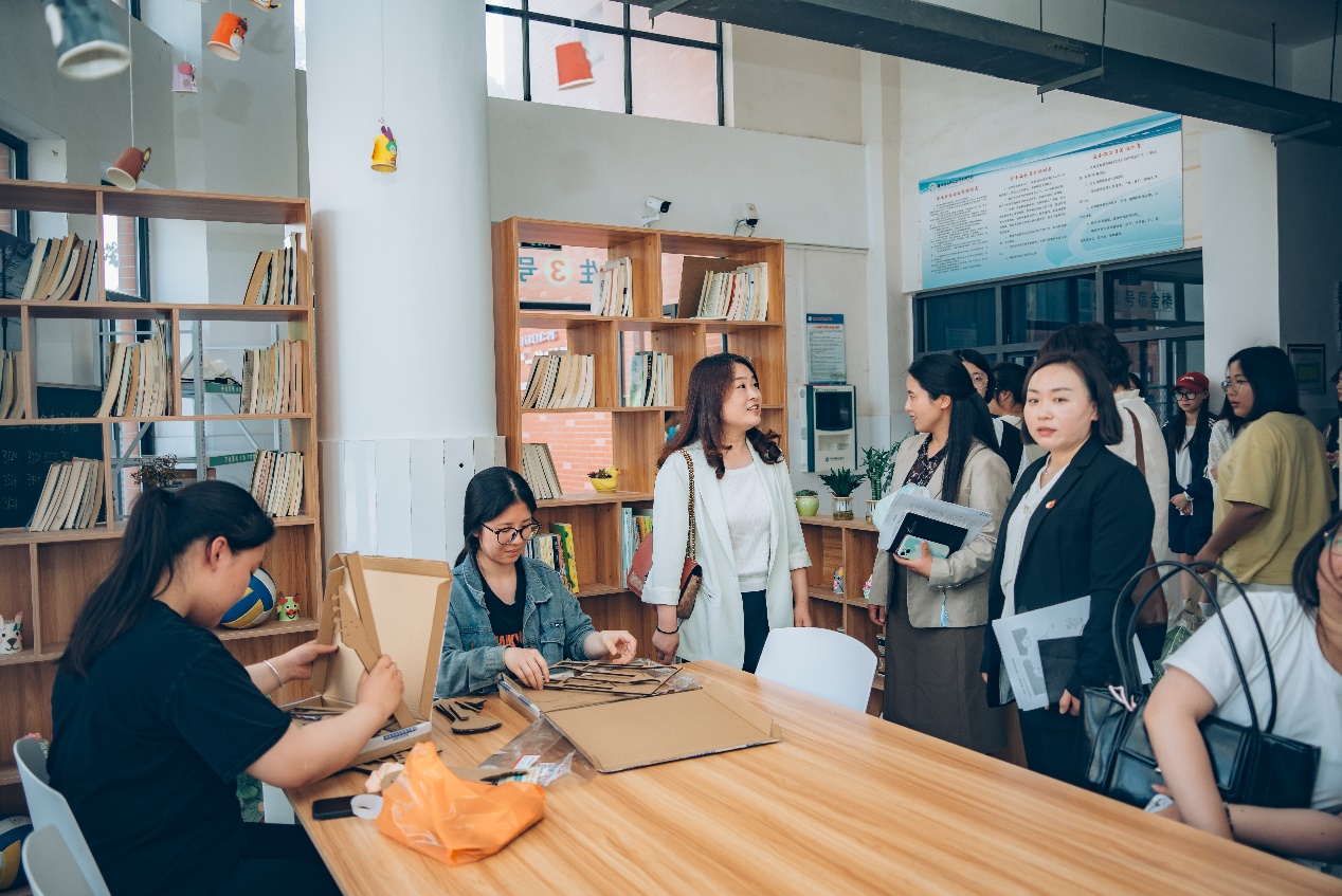 随后,双方辅导员工作室负责人,就交流内容达成结对共建意愿。与会人员观摩了盐幼师学前教育专业员工读书节系列展览、参观了一站式员工服务中心和“行知”辅导员工作室等场所。