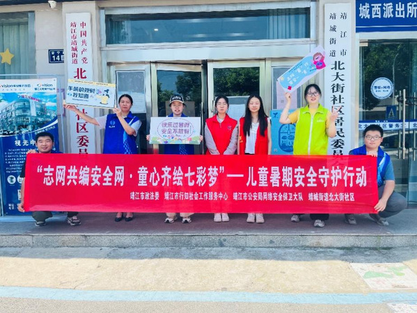 教科学子利用暑假时间,积极参加由中共靖江市委政法委员会、靖江市行知社会工作服务中心、靖江市公安局网络安全保卫大队的联合开展的“志网共编安全网·童心齐绘七彩梦”儿童安全主题网格志愿活动,提高社区儿童暑期安全意识。