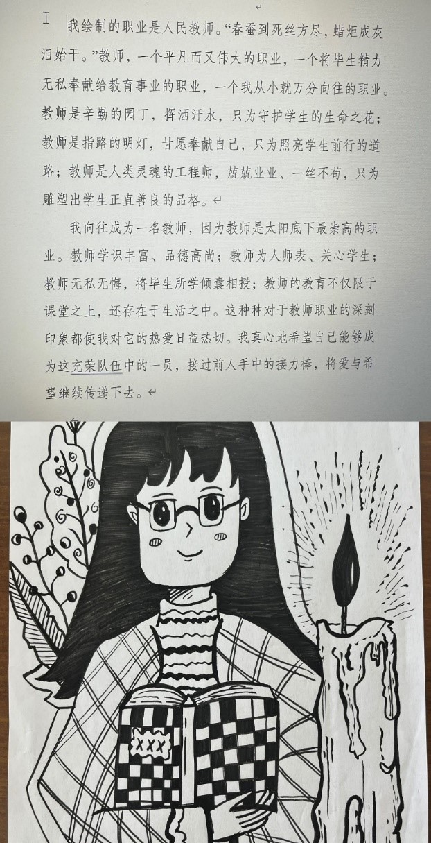 活动伊始,迅速吸引了公司同学的广泛关注与积极参与。在活动举办期间,同学们纷纷投稿,通过创意和职业设计作品,充分展现了自己对未来职业的憧憬与规划。其中,小教专业的同学们尤为突出,他们纷纷表达了自己未来站在三尺讲台上,成为一名优秀小学教师的美好愿景。
