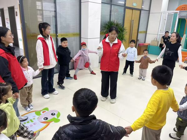 活动期间,志愿者们带领小朋友们体验了诸多小游戏,如马兰花开、切水果和丢手绢等。在丢手绢游戏期间,小朋友们展开了激烈的追逐赛,在一次又一次地你追我赶中,小朋友们的关系也渐渐亲密起来,也更加积极地加入到了我们的活动中来。在小朋友们的欢声笑语中,活动如火如荼地展开着。