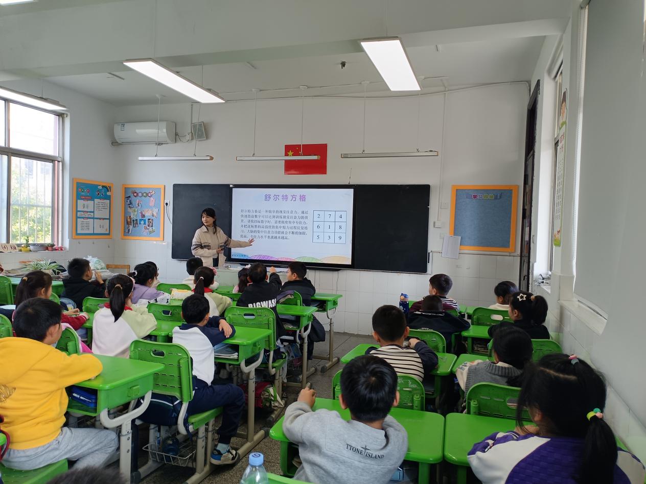 我院22级和23级应用心理学专业的员工以小组为单位开展活动。包括心理健康课和心理实验仪器科普与体验等活动,全方位,多层次地为盐城小学三四年级的孩子们提供增强注意力的方法。心理健康课上,老员工们通过故事和游戏引出话题,让小员工在参与活动的过程中,认识到提高注意力的重要性并掌握提高注意力的方法。在心理实验仪器科普环节,小员工们对生活中的心理现象有了更直观的认识和理解,为其良好习惯的养成打下基础。