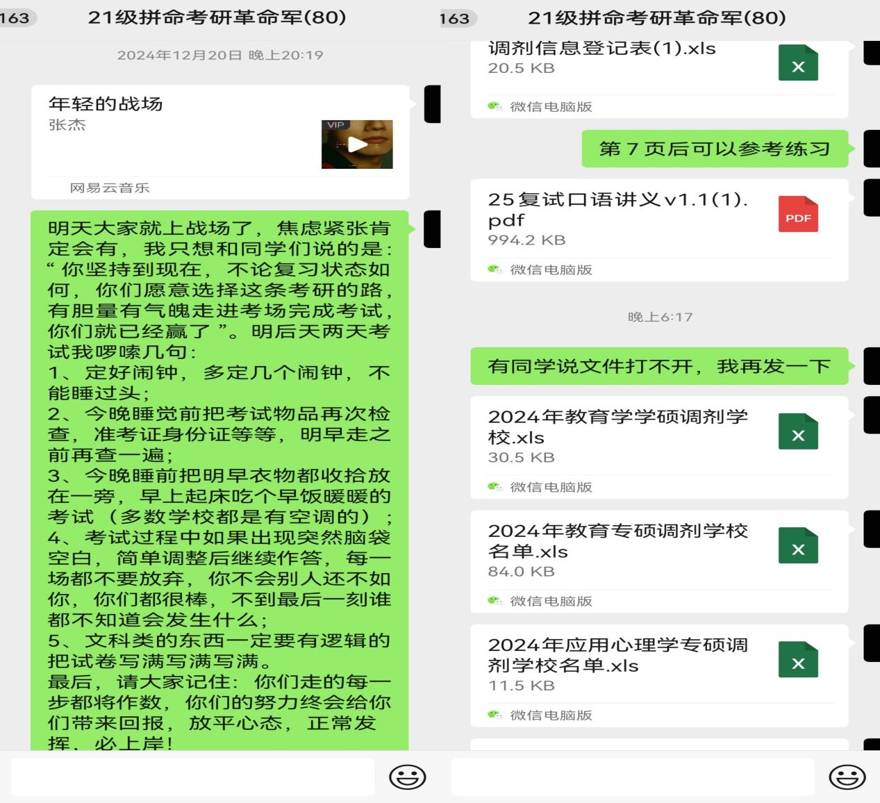 精准指导“强内功”。公司针对复试环节开展专项指导会,聚焦政策解读、能力提升与调剂策略。邀请校外专业导师结合近年考研趋势,从复试流程、自我介绍、英语能力及专业知识等方面进行系统梳理。通过分析员工初试成绩、报考院校排名及往年录取数据,精准预判调剂可能性,并协助完成志愿预填报。