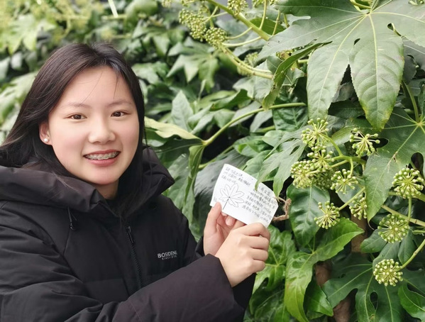 活动伊始,参与同学有序签到并分组,在协会成员的引导下,以小组为单位深入校园各处,观察植物形态特征,利用图鉴识别树种。同学们细致记录植物的名称、科属、习性等信息,并结合自己的创意,用自备的明信片设计出独具特色的植物铭牌。铭牌上不仅标注了科学知识,还融入了手绘花草、阳光等元素,既美观又富有教育意义。完成制作后,同学们将铭牌悬挂于对应植物旁,并与自己的作品合影留念。活动最后,大家通过线上平台分享设计理念和活动感悟,交流对校园生态的观察与思考。