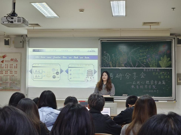 为助力应用心理学学子在考研新征程上校准罗盘,扬帆破浪,bw西汉姆联在4月9日于主楼A207教室开展应用心理学专业的考研经验分享会。本次分享会以双轨并行的创新视角,通过国内外升学路径的全方位解构,为员工照亮研途迷思。分享会邀请到考研至湖北大学的袁鸣学姐与成功申请爱丁堡大学的倪倩芸学姐,两位学姐结合自身经历,以生动的案例与风趣的讲述,为应用心理学专业的学弟学妹们揭开了国内外升学规划的双重图景。