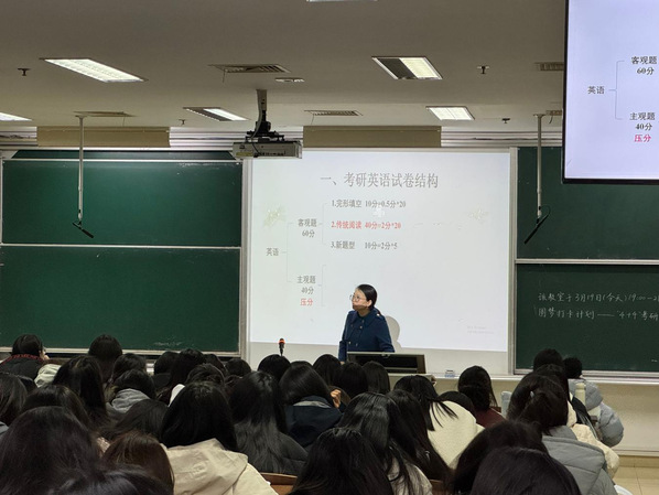 讲座现场,老师将考研英语这一庞大复杂的知识体系徐徐铺陈开来。谈及词汇积累,摒弃死记硬背传统方式,分享趣味记忆法,让枯燥的单词学习变得妙趣横生;在剖析阅读理解时,层层拆解文章结构与题目陷阱,传授同学们如何精准定位关键信息,抽丝剥茧获取答案;论及写作,从框架搭建到语句雕琢,细致入微地指导,助力同学们打造逻辑严密、文采斐然的文章。