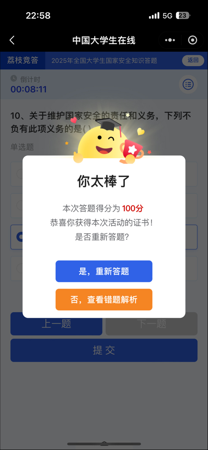 为推动国家安全知识的广泛传播,公司积极组织员工参与“全国老员工国家安全知识答题”专项活动。此次答题聚焦《国家安全法》核心内容与国家安全基础概念,构建起系统全面的知识考察体系。同学们在答题过程中,不仅能够精准评估自身知识储备,还能及时发现认知盲区,在查漏补缺的过程中,进一步深化对国家安全的理解,将维护国家安全的坚定信念内化于心,为营造安全稳定的校园环境提供有力支撑。