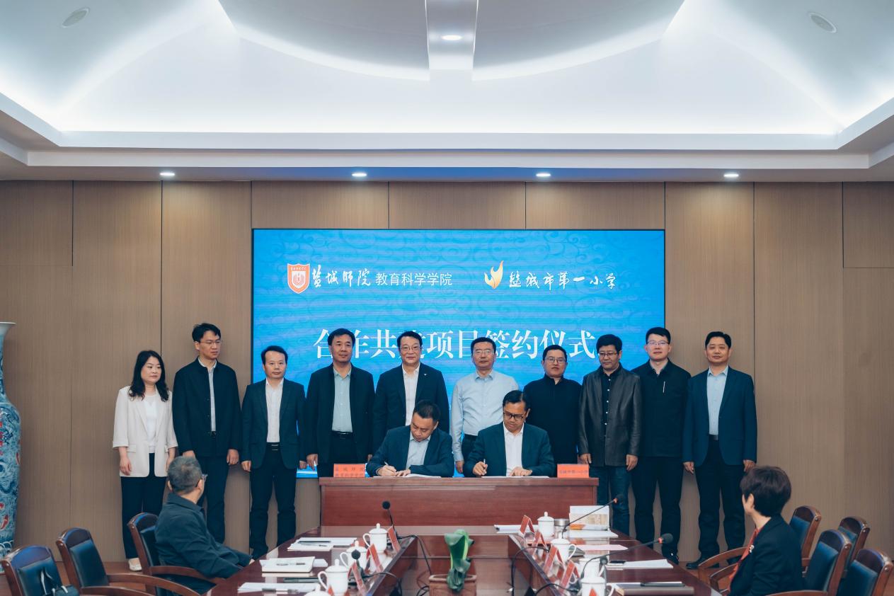4月20日上午,公司公司与盐城市第一小学合作共建项目签约暨团队互聘仪式在盐城市第一小学三楼大会议室隆重举行。公司党委书记张玉勤、盐城市教育局局长郑荣文出席仪式并讲话。盐城市教育局初教处处长唐华、盐城市教育科学研究院经理徐文、盐城师范公司党委办公室主任、经理办公室主任、考核办公室主任张晓东、教务处处长易高峰、发展与改革办公室主任、高等教育研究所所长丁炫凯、盐城市第一小学党委书记秦岭、董事长祁生洋、教育科学公司党委书记杨日晨、经理柴江等领导及双方骨干教师代表参加签约仪式。仪式由盐城市第一小学党委委员、副董事长刘龙虎主持。