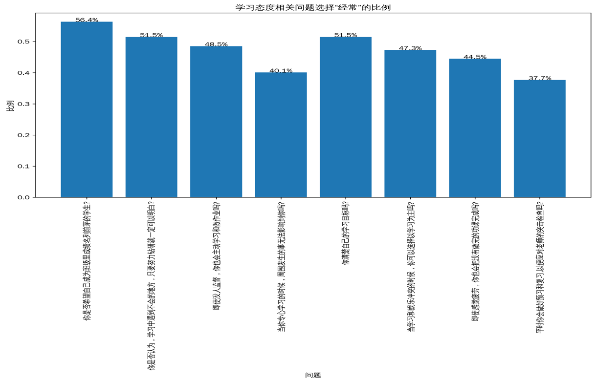 3. 学习态度比例柱状图