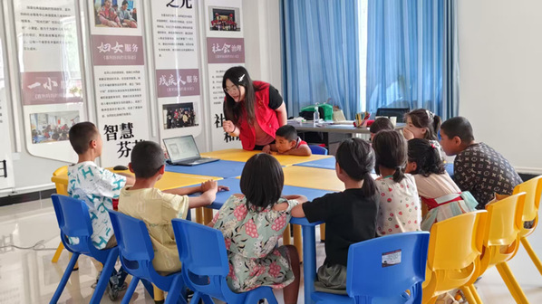 在5月17日的上午,我和三位同学一起前往了红石榴社区,我们将共同完成一节课。本次课分为四个部分,分别是“红色故事”“电影赏析”“歌曲传唱”“绘画”,我这次上的课是音乐课,我教唱了江苏民歌《茉莉花》,悠扬的江南曲调与浓郁的西域风情在活动现场交织碰撞,为社区的小朋友们带来了一场别开生面的文化盛宴。