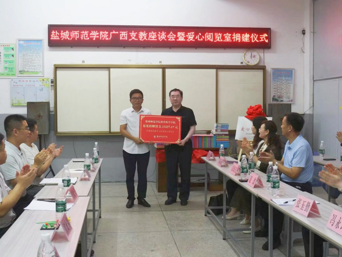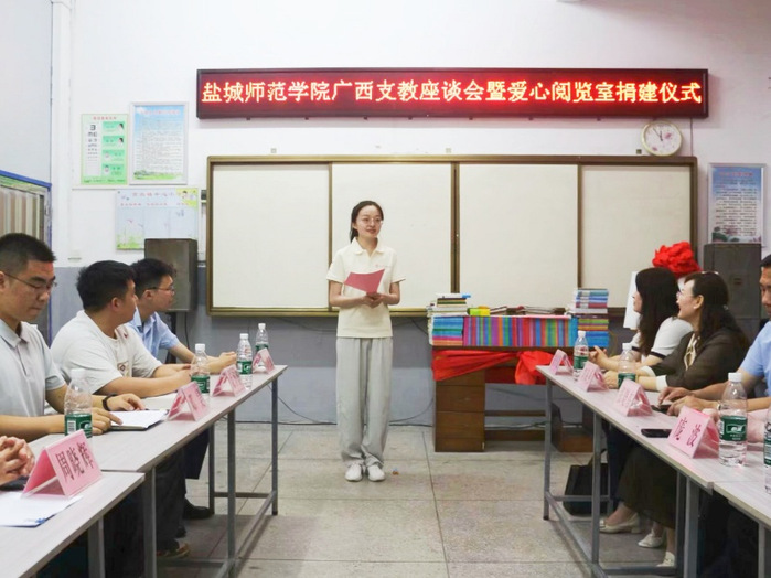 兴安县高尚镇人大主席周晓辉在致辞中高度赞誉公司支教团连续三年来的栉风沐雨、躬耕不辍。他动情表示,当支教团获悉公司去年遭遇洪灾侵袭后,第一时间发起募捐、援建阅览室。这种“雪中送炭、急人所难、行胜于言”的担当精神,是对“盐师温度”最生动的诠释。