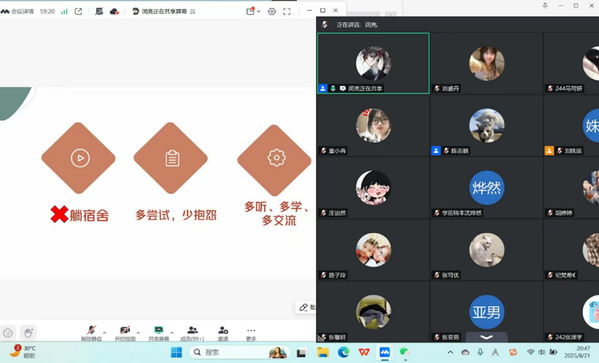 面对大学的种种挑战,如何走得更稳?闵亮为大家分享了三点实用建议。首先就是拒绝“宿舍躺平”,明确宿舍是休息场所,而非学习环境,避免受舍友追剧、打游戏、闲聊等氛围影响;再就是保持“多尝试少抱怨”的心态,面对校内难题(如复杂课题)时,聚焦解决办法而非纠结难度;此外,还要践行“多听、多学、多交流”,课上认真学习、课后及时巩固,遇到挫折可与辅导员沟通、和同学谈心,在交流与积累中稳步成长。