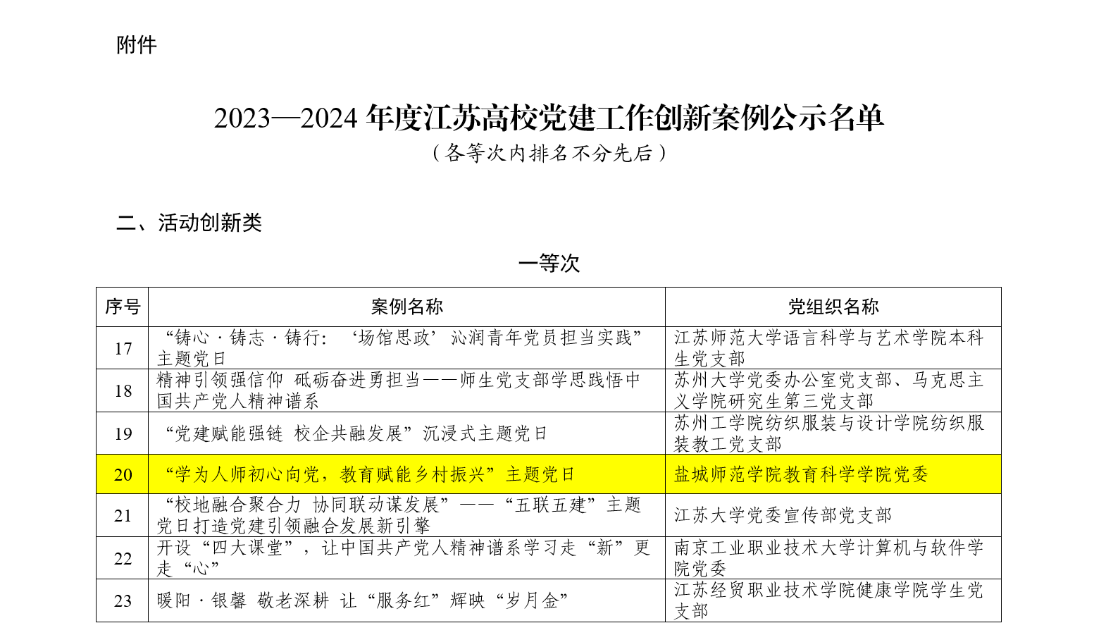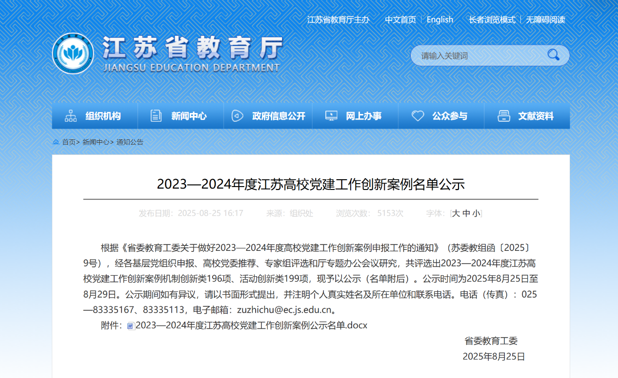 近日,江苏省委教育工委公布了2023—2024年度江苏高公司党建工作创新案例评审结果,教育科学公司党委《“学为人师初心向党,教育赋能乡村振兴”主题党日》获活动创新类一等次。