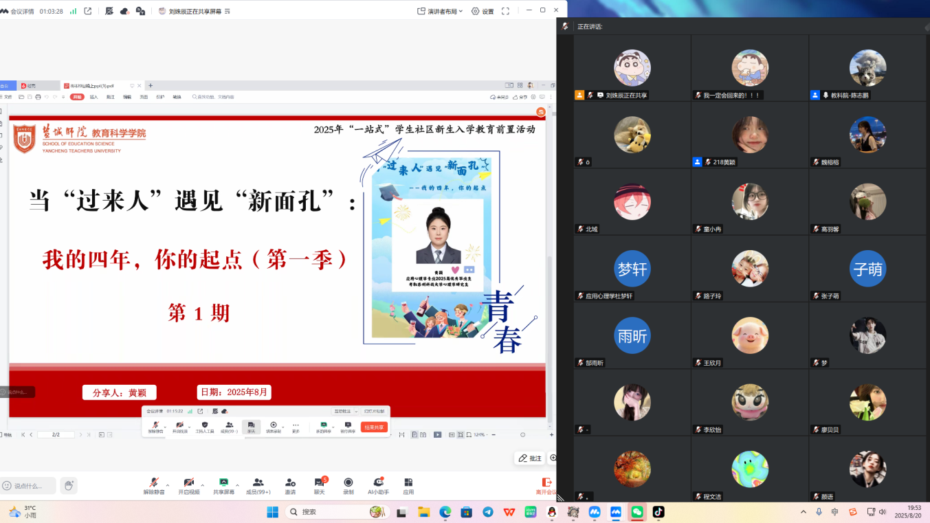 设前置引航任务,夯实成长发展根基。为帮助新生平稳实现从高中到大学的过渡,公司精心设计准大一新生,从高中到大学的“缓冲带”,这“六个一”前置课指南活动,并推出12期“当过来人遇见新面孔——‘我的四年,你的起点’”优秀毕业生分享会。前者为新生提供系统性的入学准备指引,后者通过优秀学长学姐分享学习方法、生活经验及价值理念,从心态调整、能力储备、校园认知、规划意识等多维度为新生赋能。不仅为新生专业学习筑牢基础,更将为其终身成长注入持久动力。