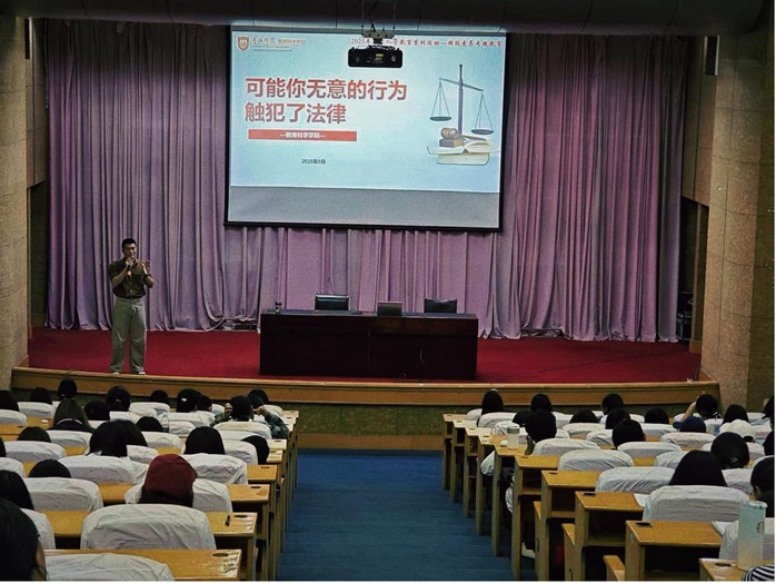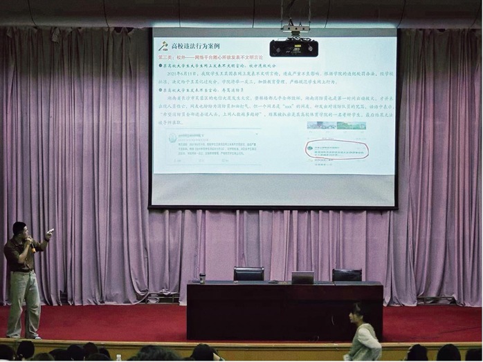 随后,活动进入网络素养教育环节,以《可能你无意的行为触犯了法律》为主题开展专题讲座。通过结合校园常见场景,从网络违法行为类别、典型案例剖析、法律后果警示等角度,深入浅出地讲解“无意之举”可能触碰的法律红线,切实强化新生法治观念与网络安全意识。